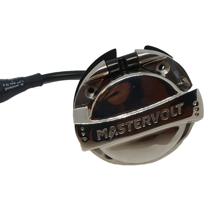 Uttagen är IP44-klassade med skyddande lock. Välj mellan utanpåliggande vita uttag för diskret installation eller infällda modeller med exklusiva ramar i krom, vit, antracit, matt silver eller brun. Krom ingår som standard. Mastervolts Puriflex-landströmskabel på 15 eller 25 meter finns som tillval. Kabeln har slitstarka, gjutna kontakter och LED-indikering för aktiv 230V-anslutning.
