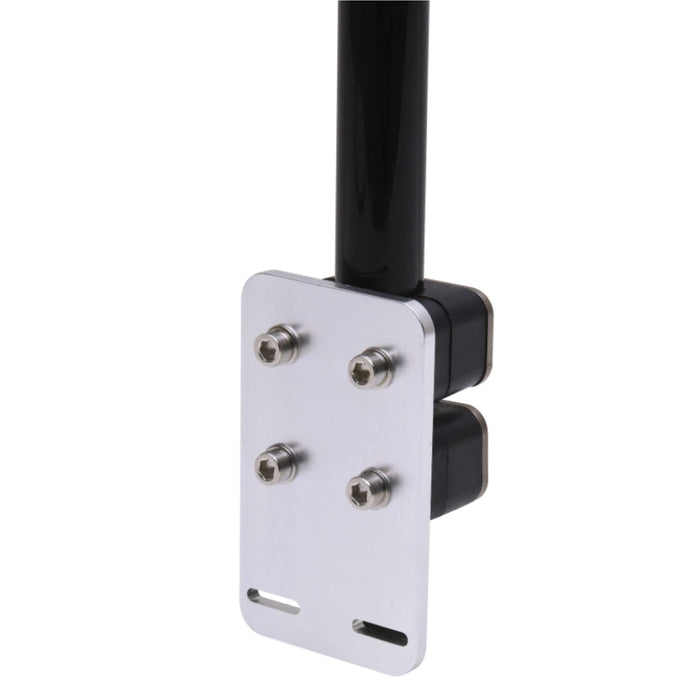 I aluminiumplattan nertill på armen finns det hål för de vanligaste sido- och akterspegelsgivarna på markanden. Med denna arm finns det även möjlighet att dessutom fästa olika live-givare (t.ex. Lowrance ActiveTarget & Garmin Panoptix).