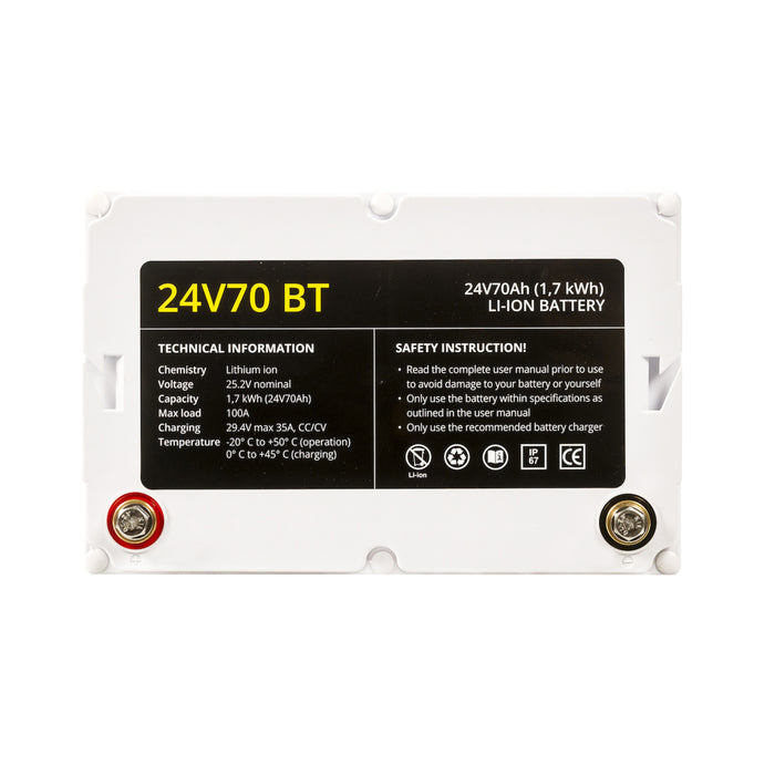 Litiumbatteriet 24V70 BT från Rebelcell är det näst största och det mest kraftfulla batteriet i 24V-serien, Med en kapacitet på hela 70Ah (1,7 kWh).
